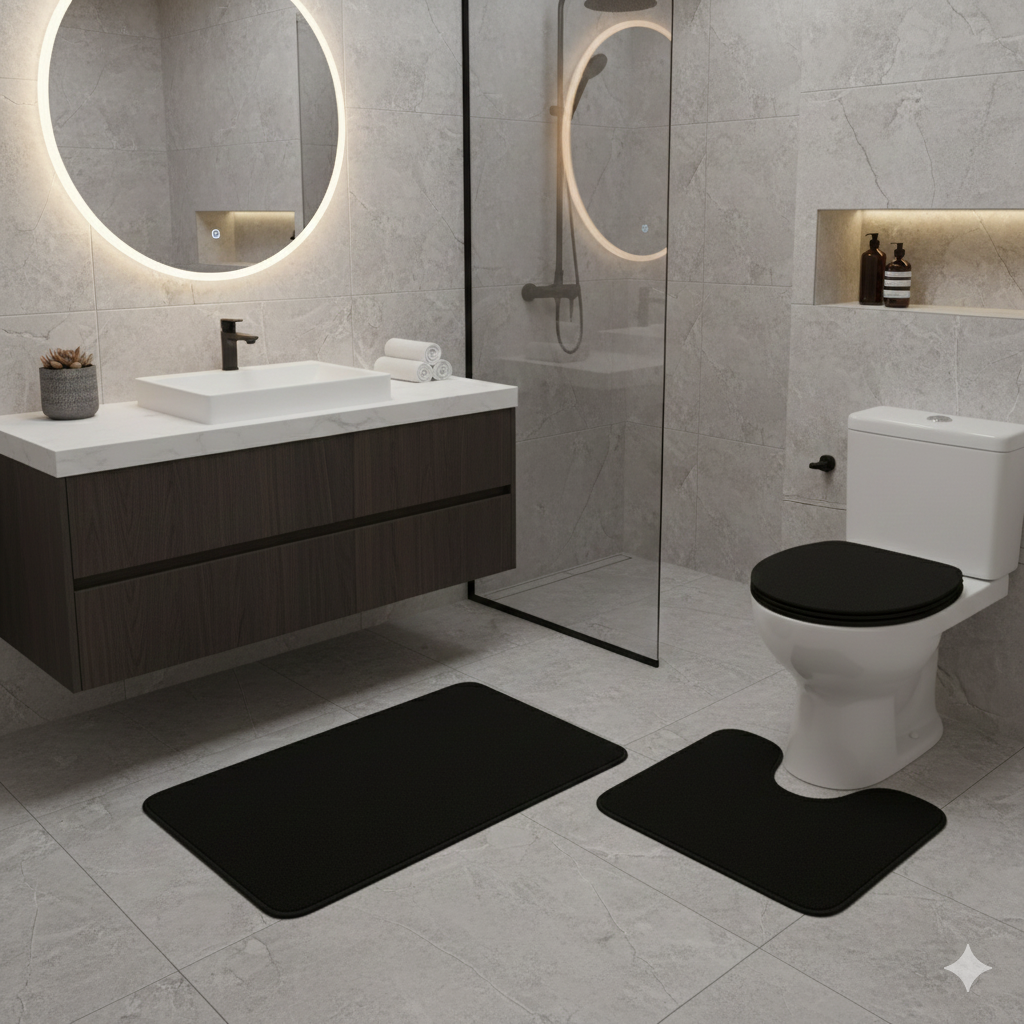 O Jogo de Tapetes para Banheiro 3 Peças oferece maciez, elegância e segurança para o seu dia a dia. Produzido em algodão pelúcia super macio, proporciona conforto ao toque e acabamento sofisticado para qualquer banheiro.